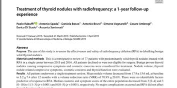 This study which was published in 2019 demonstrate that thyroid RFA is very effective and safe non surgical treatment option for patients with benign solid thyroid nodules( Goiter ) .